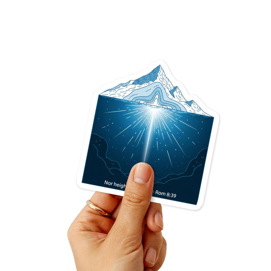 Romans 8:39 Sticker - Mountain & Sea Minimalist Bible Verse Decal