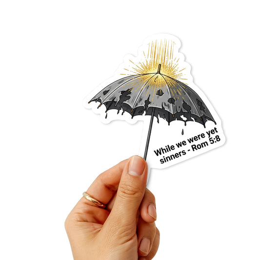 Christian Bible Verse Sticker - Romans 5:8 Grace Umbrella Decal