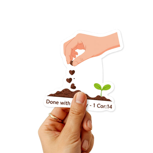 1 Corinthians 16:14 Sticker - Done With Charity Seed Sowing Design