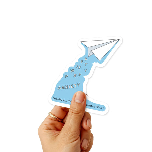 1 Peter 5:7 Bible Verse Sticker - Paper Airplane Anxiety Release