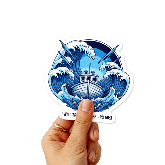 Christian Bible Verse Sticker - Psalm 56:3 I Will Trust In Thee Y2K Boat