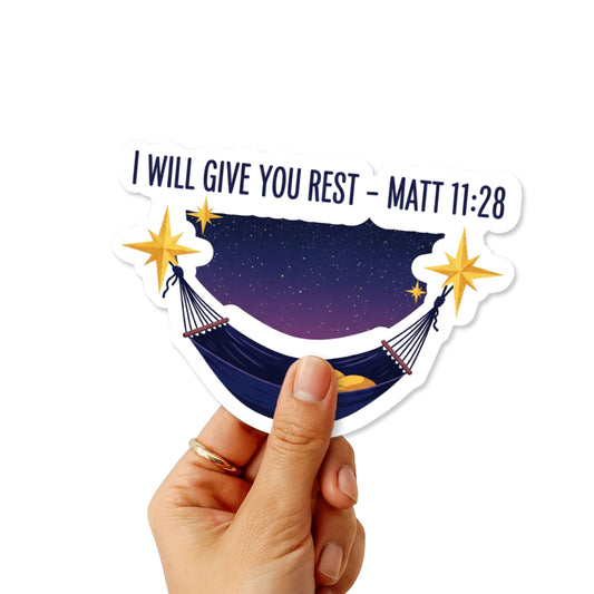 Matthew 11:28 Bible Verse Sticker - Dreamy Heavenly Rest Hammock