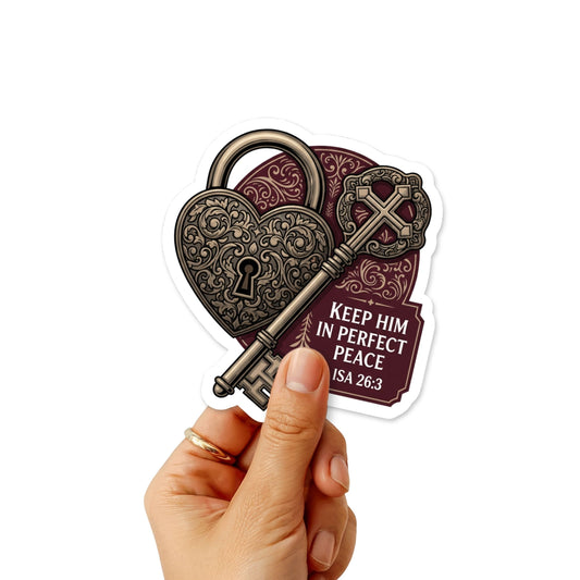 Isaiah 26:3 Christian Bible Verse Sticker - Vintage Heart Lock