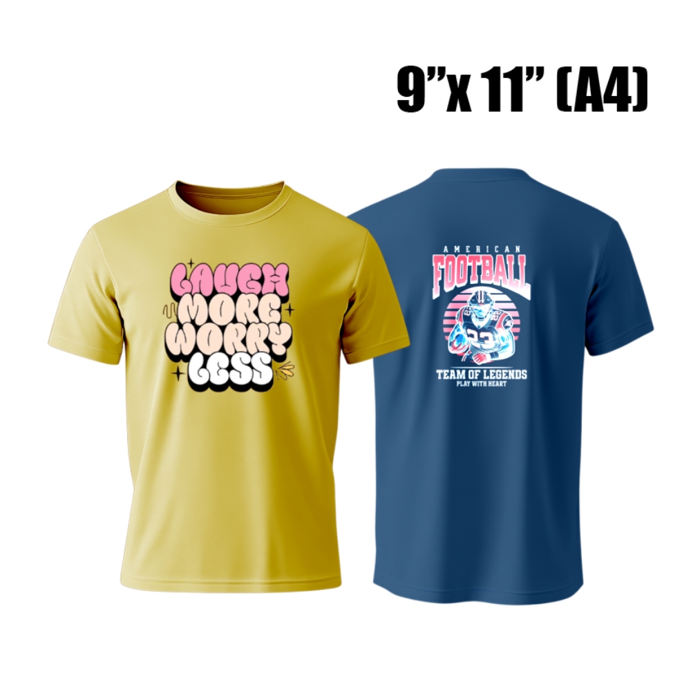 Simplify your apparel printing process with KADSTICKY’s DTF Transfers By Size. Forget the hassle of arranging gang sheets yourself. Whether you need a single logo for a chest pocket or a full-back design, simply upload your image and let our team handle the layout and production. These transfers deliver vibrant, crack-resistant prints with a soft hand feel.