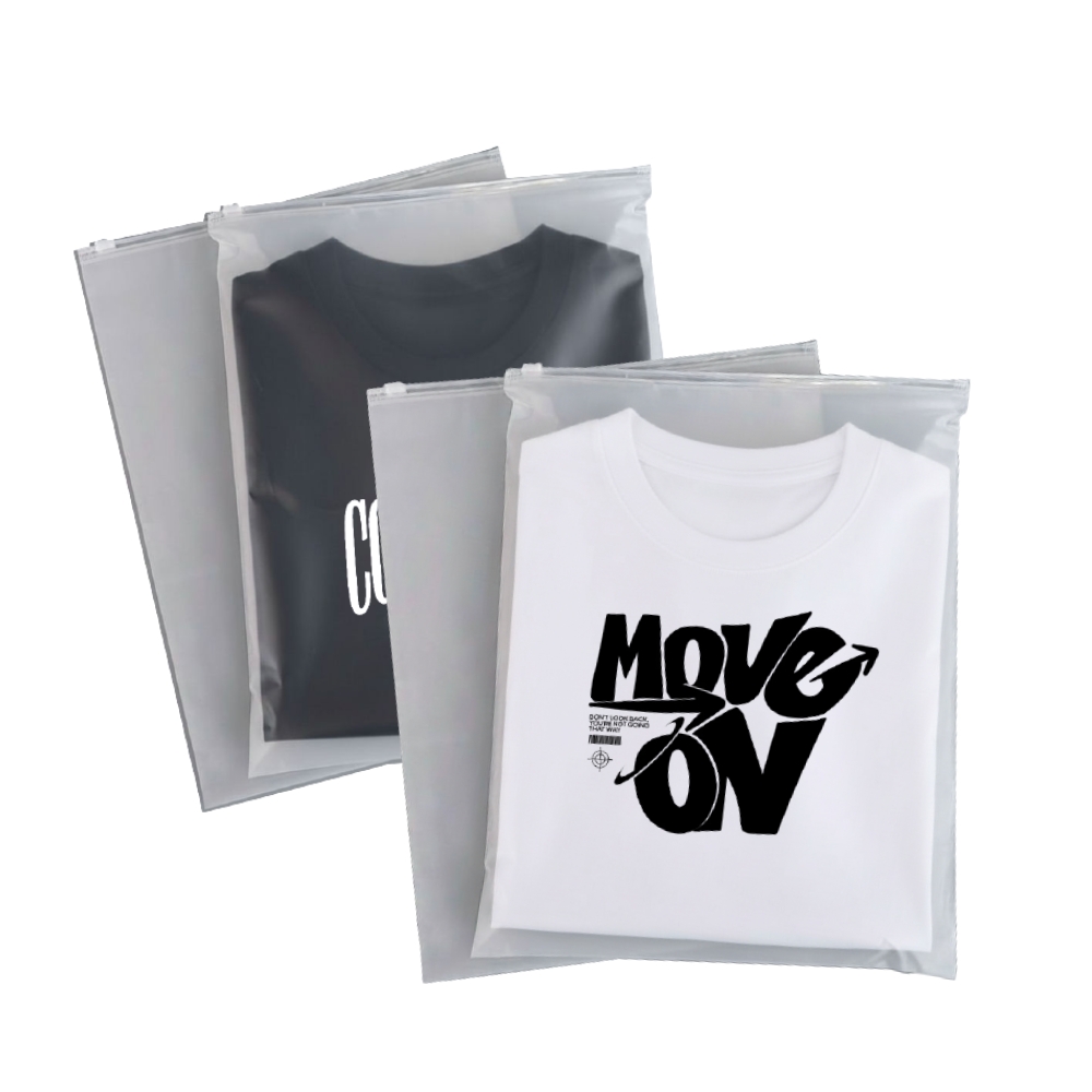 Elevate your clothing brand with our custom printed matte zipper bags. These semi-transparent, frosted bags offer a high-end look and a reusable design that customers love. Perfect for swimwear, t-shirts, hoodies, and accessories.
