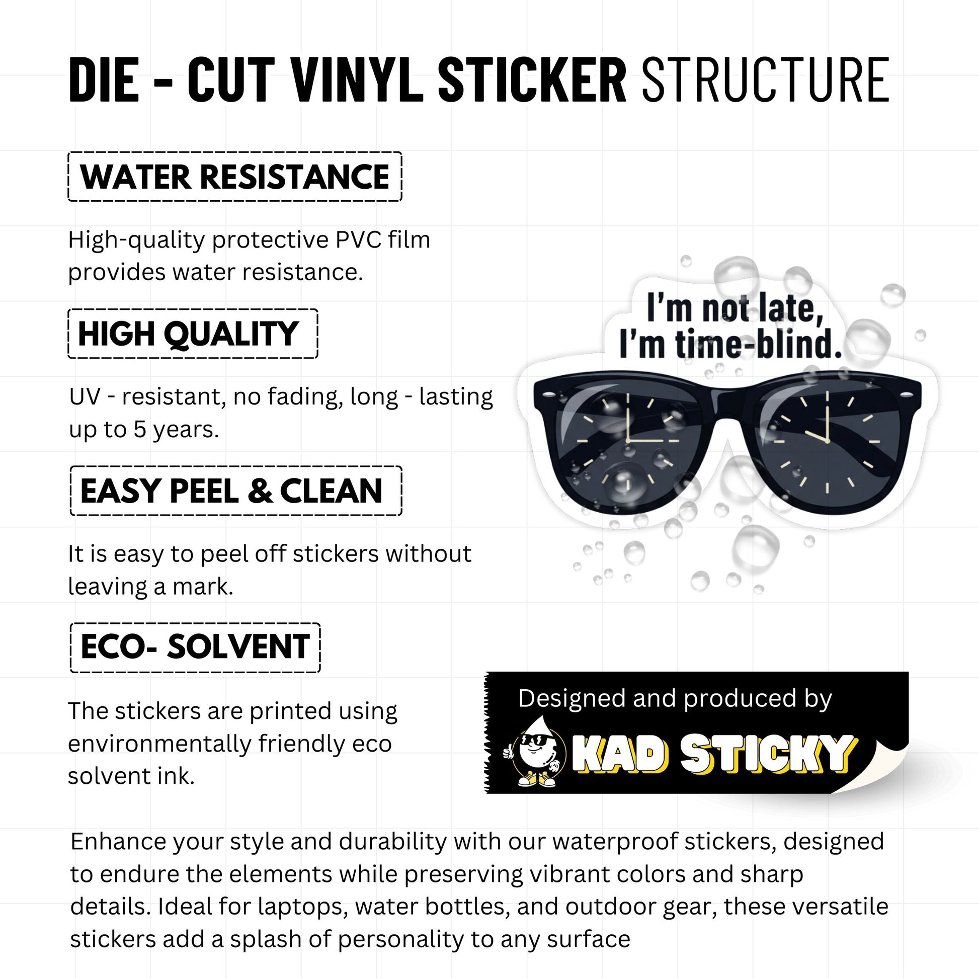 ADHD Time Blindness Sticker - Retro Sunglasses Vinyl Decal