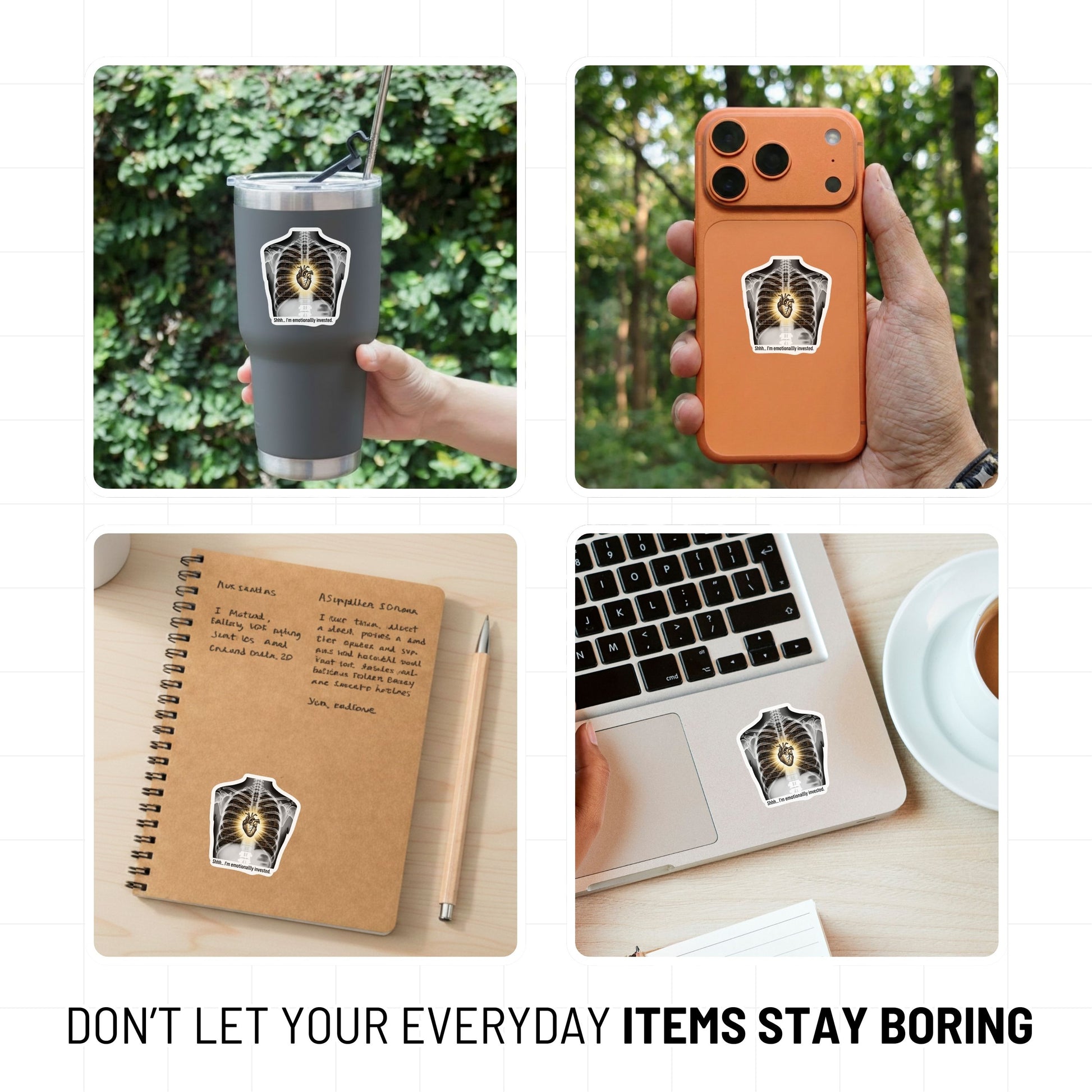 Shhh… I’m emotionally invested. This striking Book Lover Sticker captures the soul of a true bibliophile with a creative chest X-ray collage. Instead of ribs, this design reveals shelves full of stories, with a glowing gold heart signifying your deep connection to every page you turn.