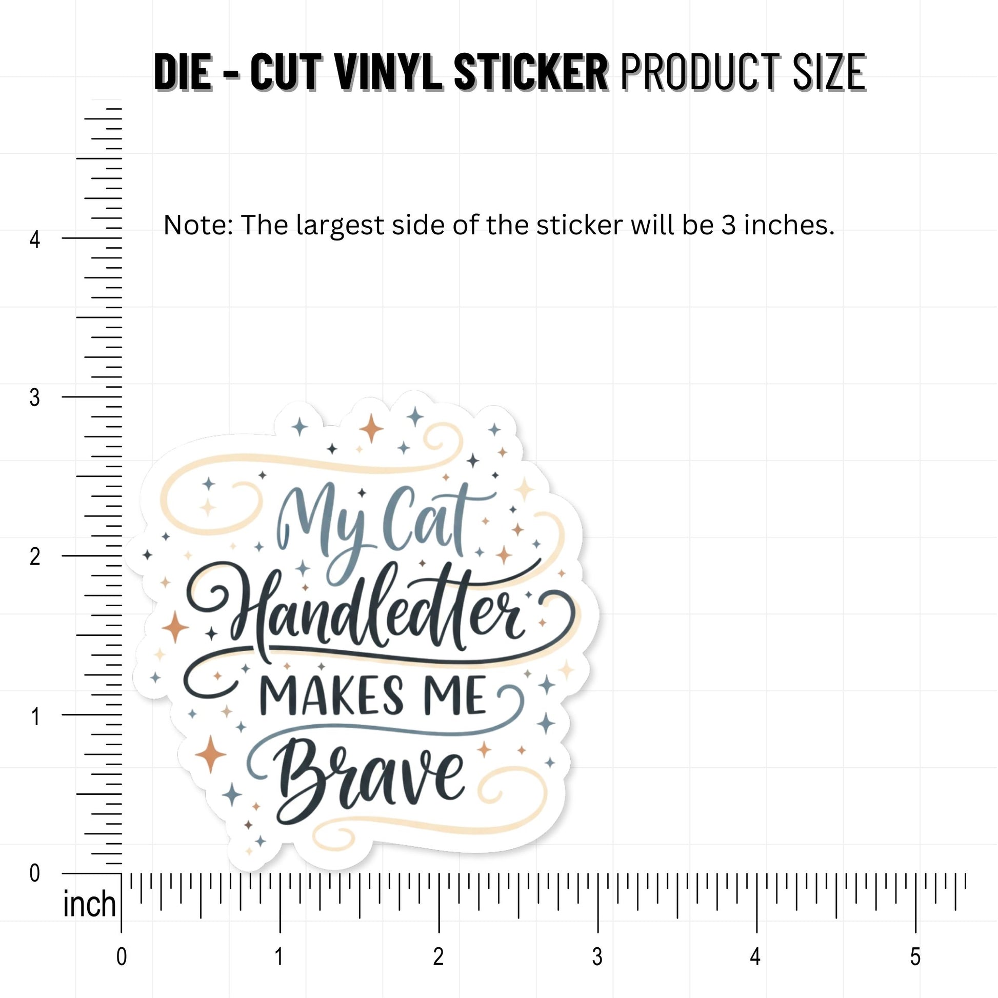 My Cat Makes Me Brave Sticker - Handlettered Cat Lover Decal