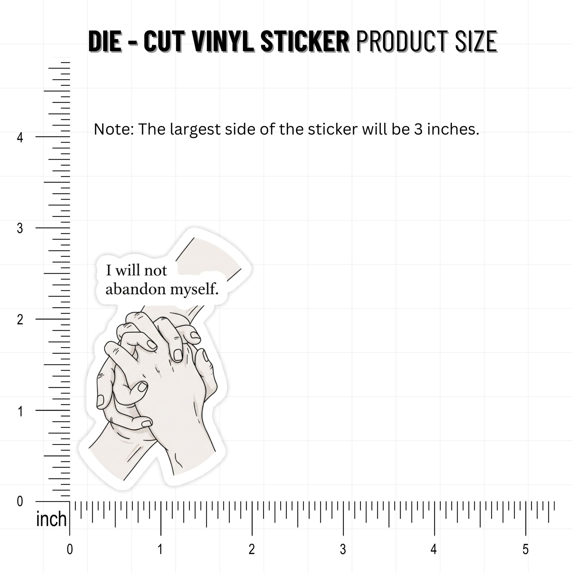 "I will not abandon myself." This powerful affirmation serves as a steady anchor for your self-worth and acts as a daily commitment to your own boundaries. Featuring a minimalist line art design of two hands holding one another, this empowerment vinyl sticker symbolizes the inner strength required to stay loyal to your identity, even when life feels overwhelming. It is a quiet but firm reminder that your peace is worth protecting and that showing up for yourself is the ultimate form of self-respect.