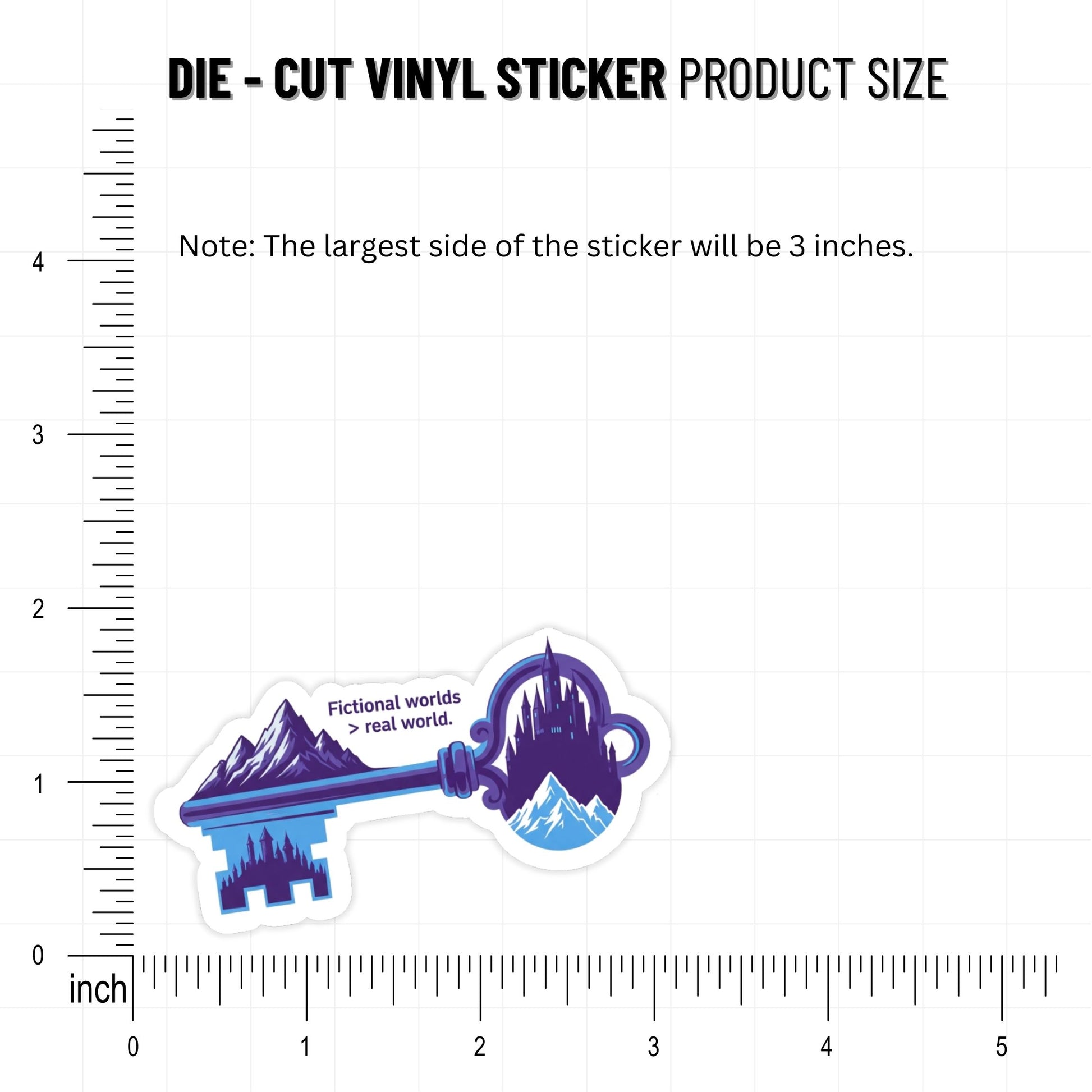Escape the mundane with our "Fictional worlds > real world" sticker. This surrealist design features a celestial key where the jagged teeth transform into a sprawling mountain range and a dreamlike castle reaching for the stars.