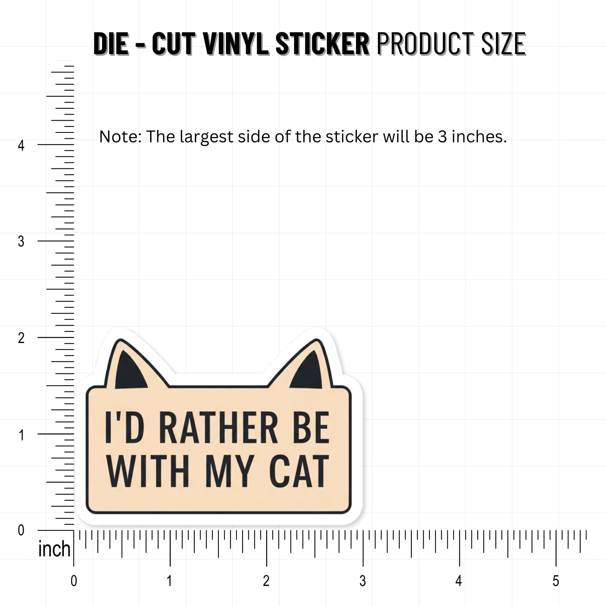 Cat Lover Sticker - I'd Rather Be With My Cat Laptop Decal