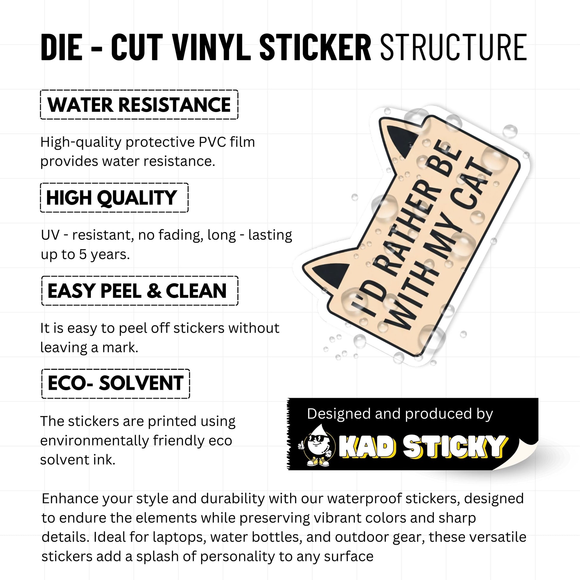 "I’d Rather Be With My Cat" — it’s not just a quote; it’s a relatable lifestyle choice. This Cat Lover Sticker is designed for the proud homebodies who find more joy in a head-butt from a feline than a crowded social event.