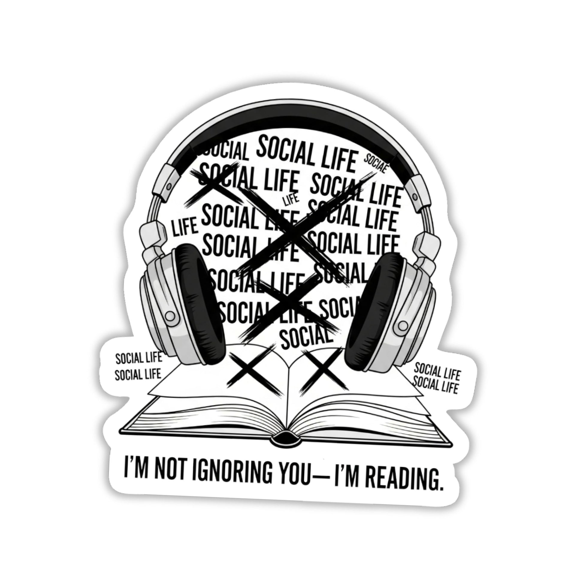 I’m not ignoring you—I’m reading. This bookish introvert sticker captures that sacred moment when the worlds within your pages become more important than the noise outside.