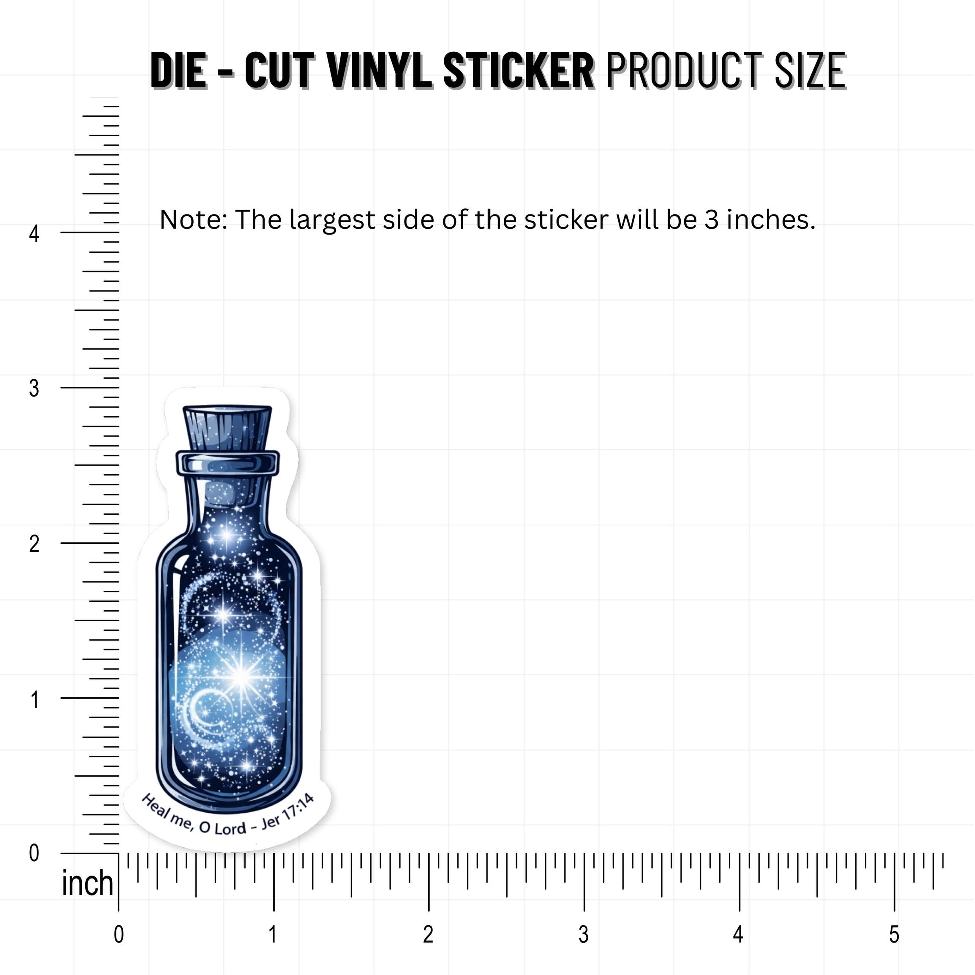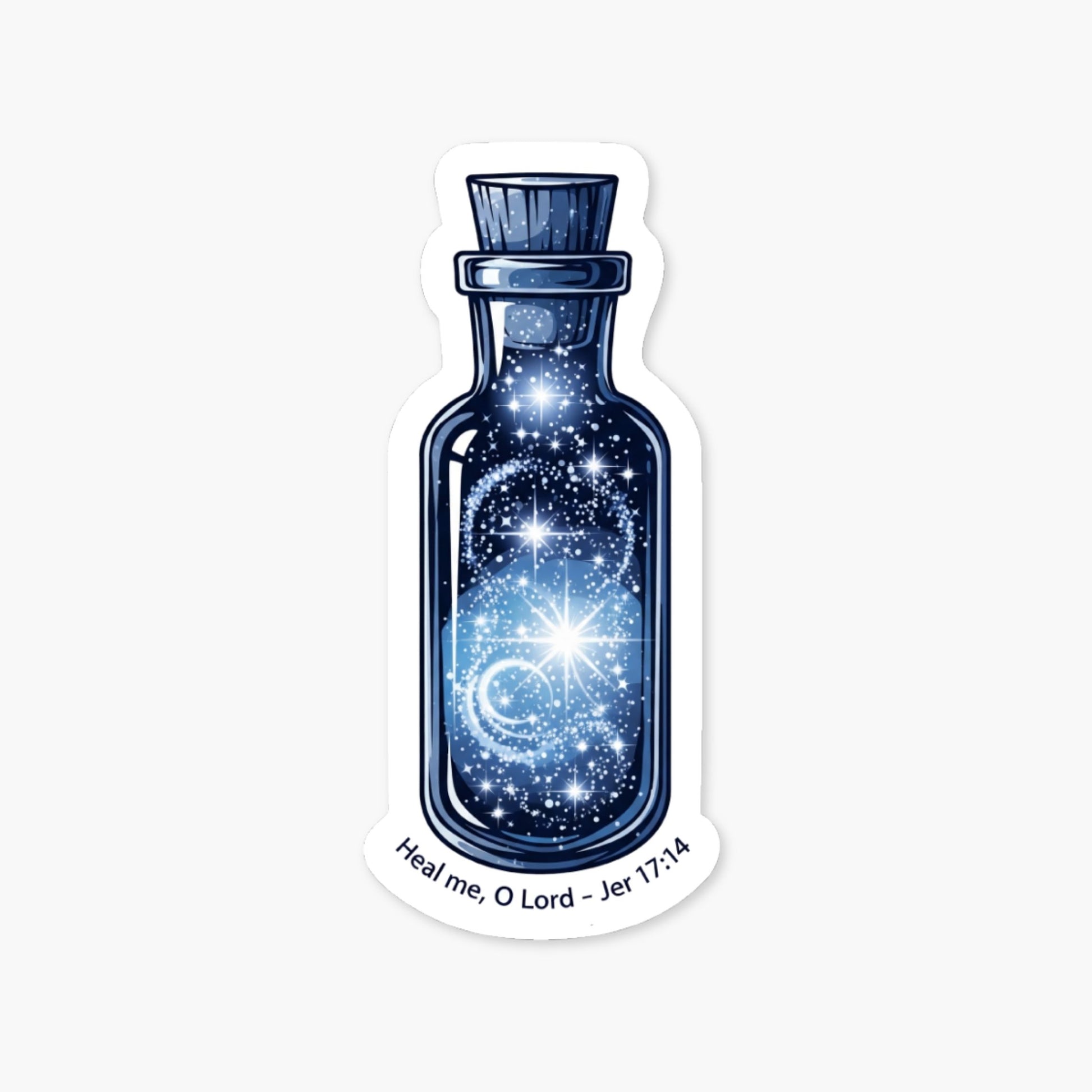 This Jeremiah 17 14 Christian sticker serves as a serene daily reminder of God’s restorative grace and infinite compassion. The artistic design features a vintage apothecary vial overflowing with shimmering starlight, symbolizing that true healing is a divine, magical gift from the Creator. Whether you are navigating a difficult season or simply want to display your identity in Christ, this sticker acts as a visual prayer that radiates peace and hope. Its magical blue and silver aesthetic offers a modern way to keep your favorite scripture close during busy or uncertain seasons, making it a perfect portable devotion.