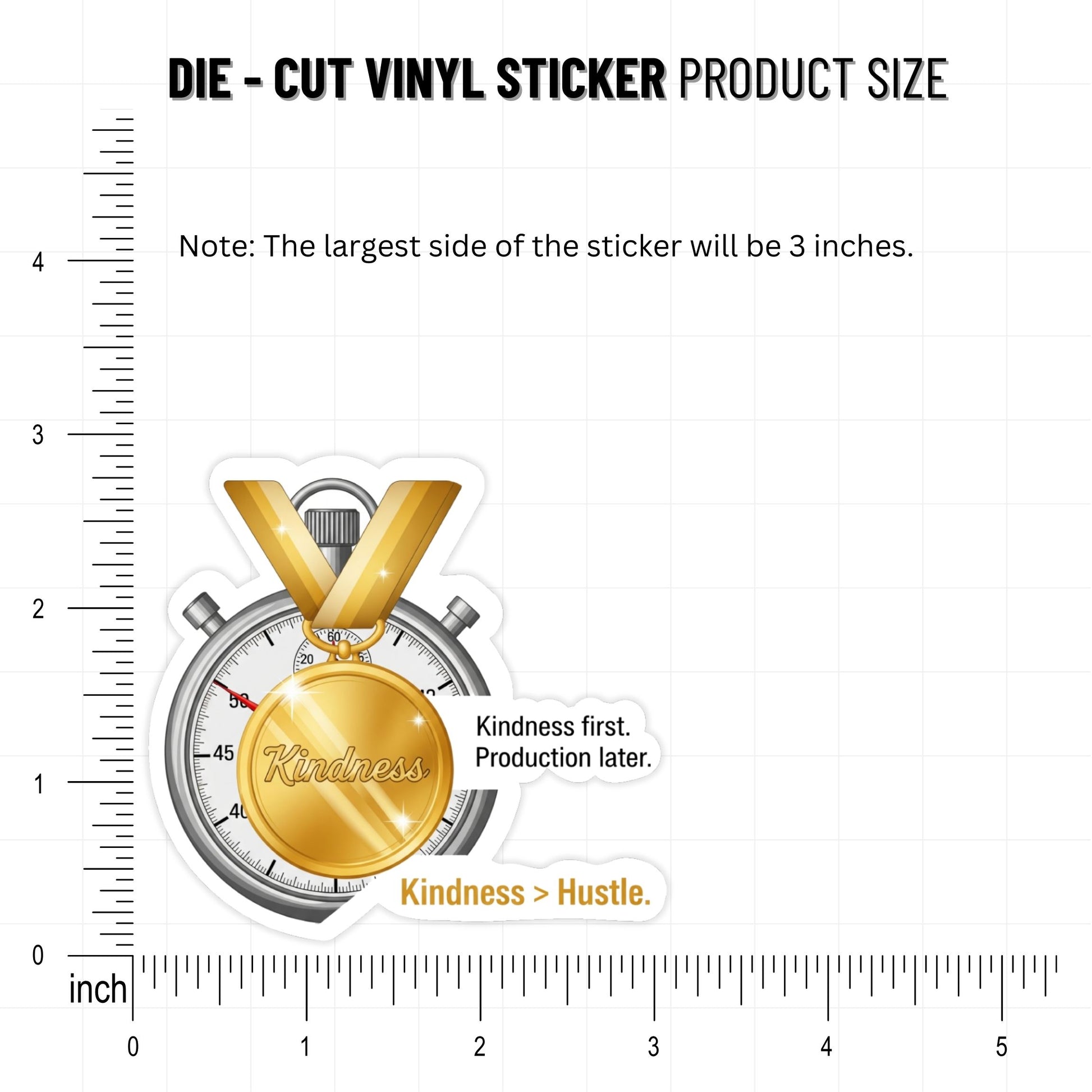 Prioritize your peace with our "Kindness first. Productivity later." sticker, a gentle reminder that your worth isn't measured by your output. This neurodivergent sticker features a shimmering gold medal resting atop a stopwatch, beautifully subverting the hustle-culture narrative by celebrating self-compassion over rigid schedules.