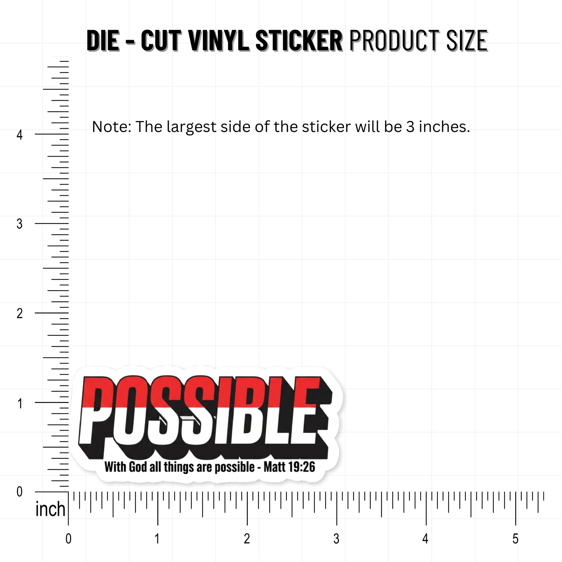 The high-contrast red, black, and white color palette creates a modern, edgy aesthetic that stands out on any dark or light surface. Whether you are facing a difficult season or celebrating a victory, this scripture-based decal keeps you grounded in the truth that God provides strength for every challenge. Its eye-catching 3D effect on the word "POSSIBLE" emphasizes the limitless power of Christ in our daily lives through a stylish, urban-inspired lens.