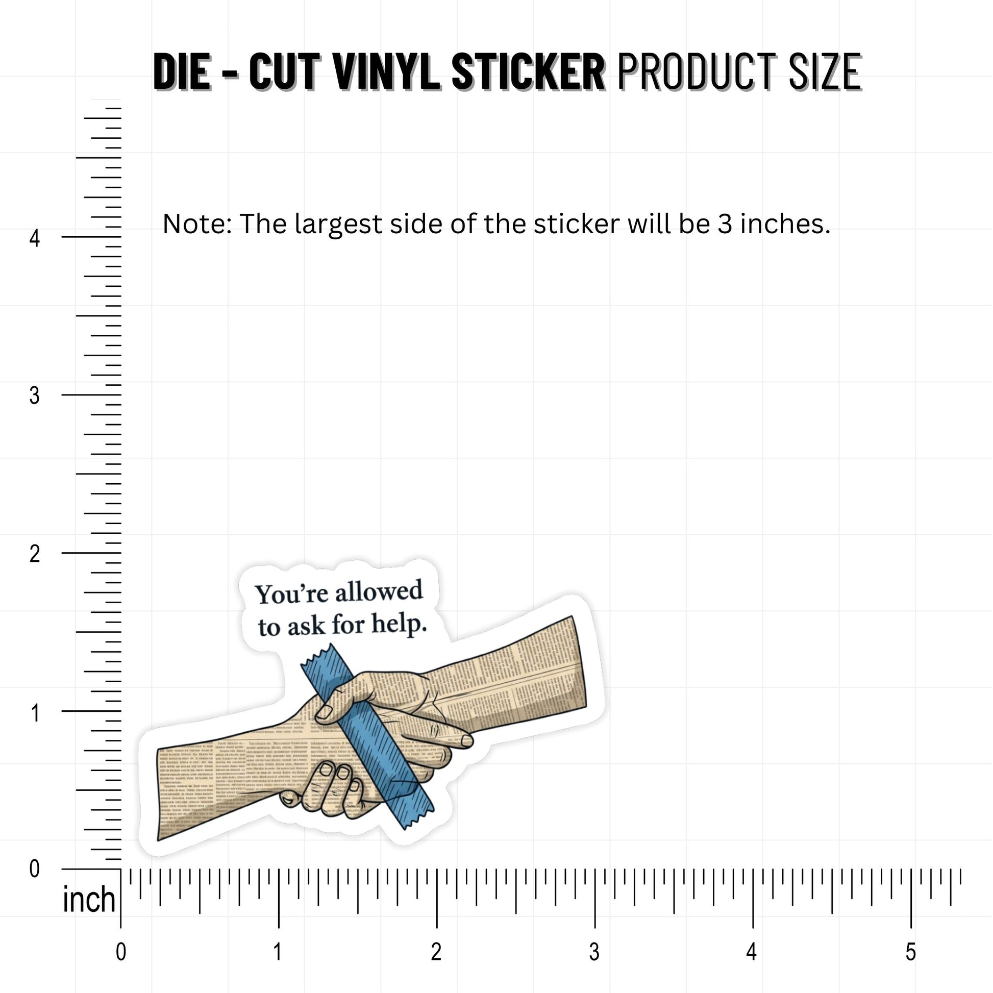 You’re allowed to ask for help. This mental health sticker serves as a gentle visual hug, reminding you that vulnerability is a strength, not a weakness in our fast-paced world. Featuring a thoughtful DIY newspaper collage design of two hands reaching out and held together with hand-drawn tape, it symbolizes the beautiful, tactile messiness of human connection and the power of mutual support during hard times.