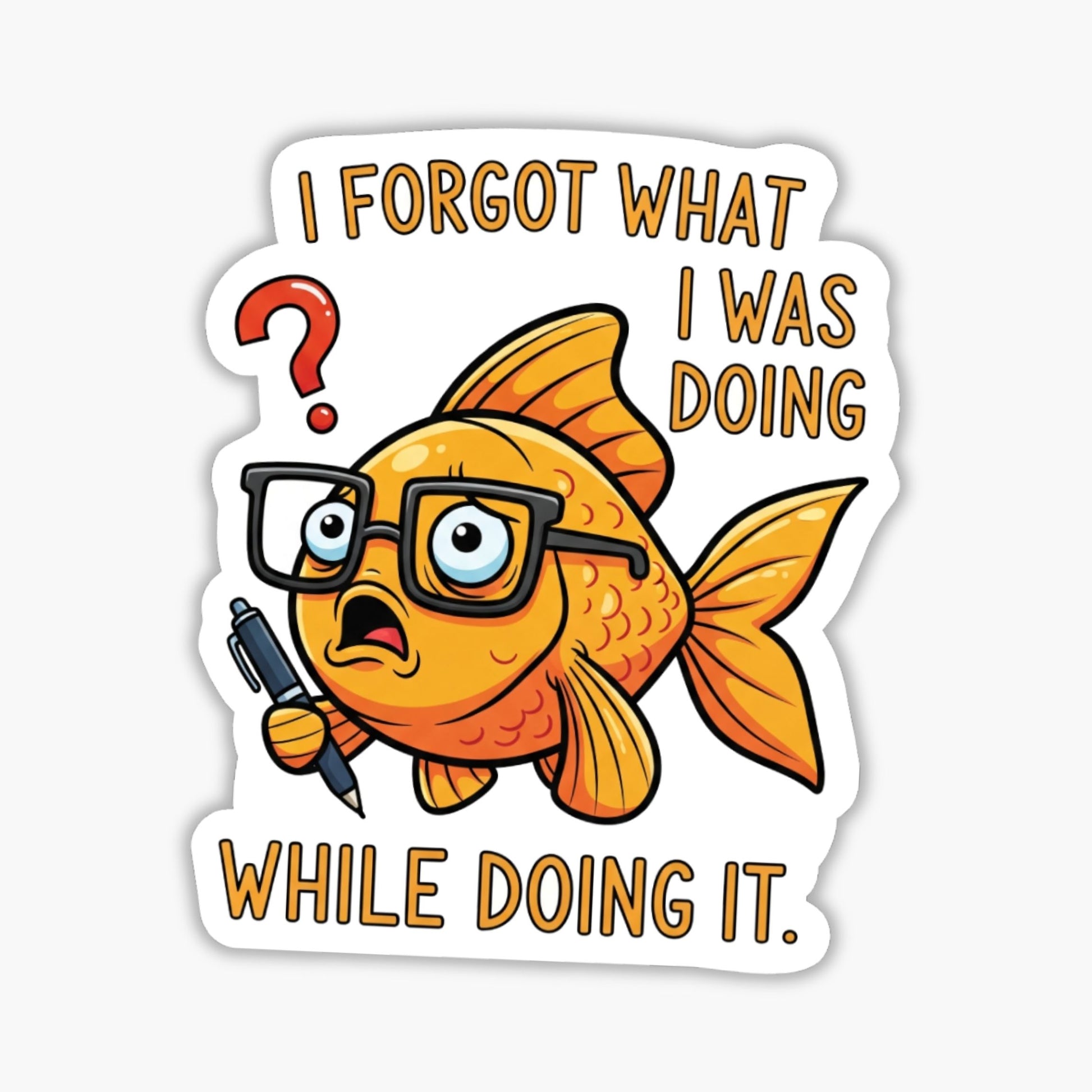 “I forgot what I was doing while doing it.” If this feels like your daily inner monologue, our Neurodivergent Humor Sticker is the perfect way to acknowledge those brain buffering moments with a smile. Featuring a cute, intellectual goldfish wearing glasses and looking completely dazed with a pen in hand, this Buffer Overflow design captures the essence of executive dysfunction and brain fog in a relatable, lighthearted way.