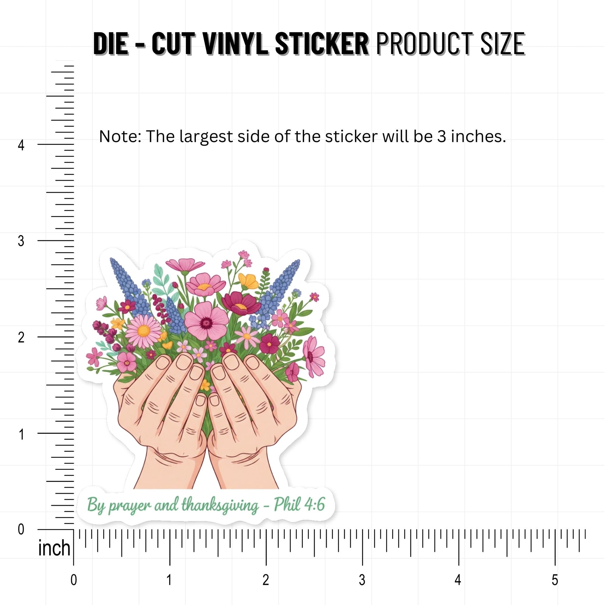 Embrace a heart of gratitude with our Philippians 4:6 Bible Verse Sticker, featuring the comforting words, "By prayer and thanksgiving." This design serves as a gentle visual reminder to surrender your worries and bloom in faith, no matter the season.