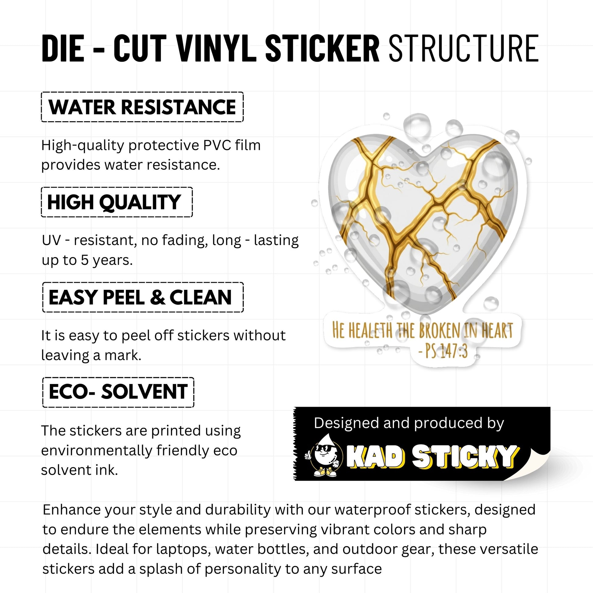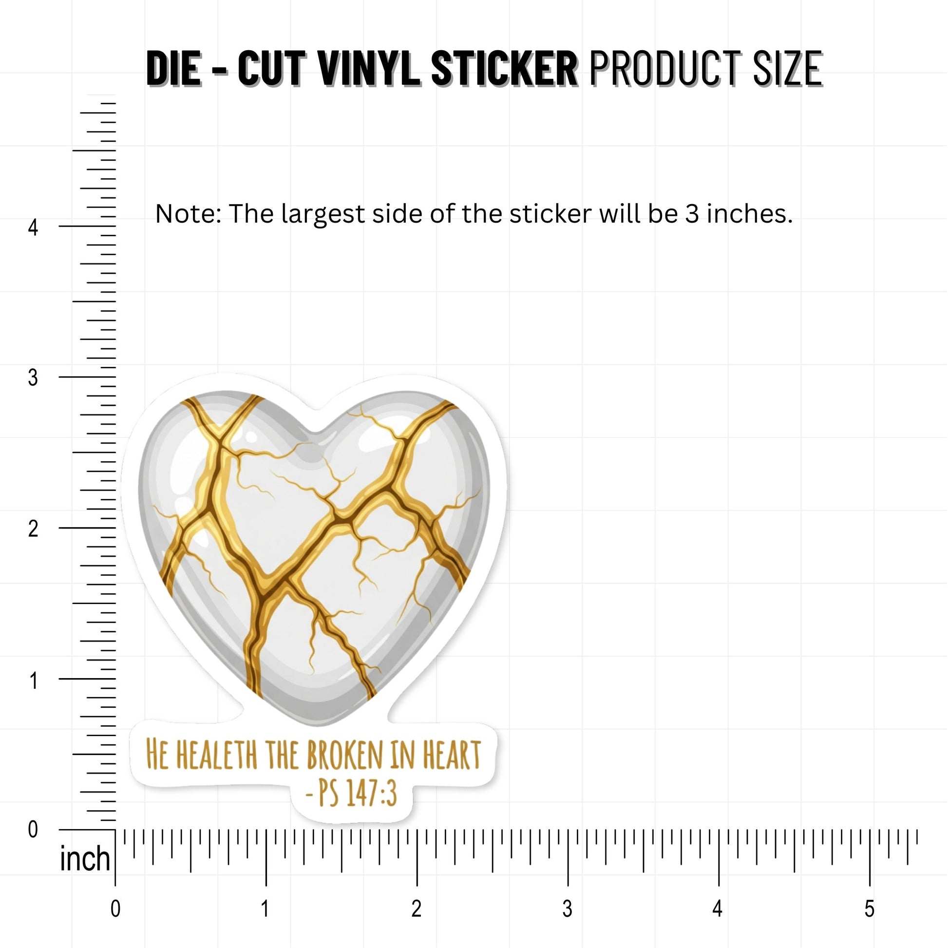 Psalm 147 3 Bible Verse Christian Sticker - Kintsugi Heart Design