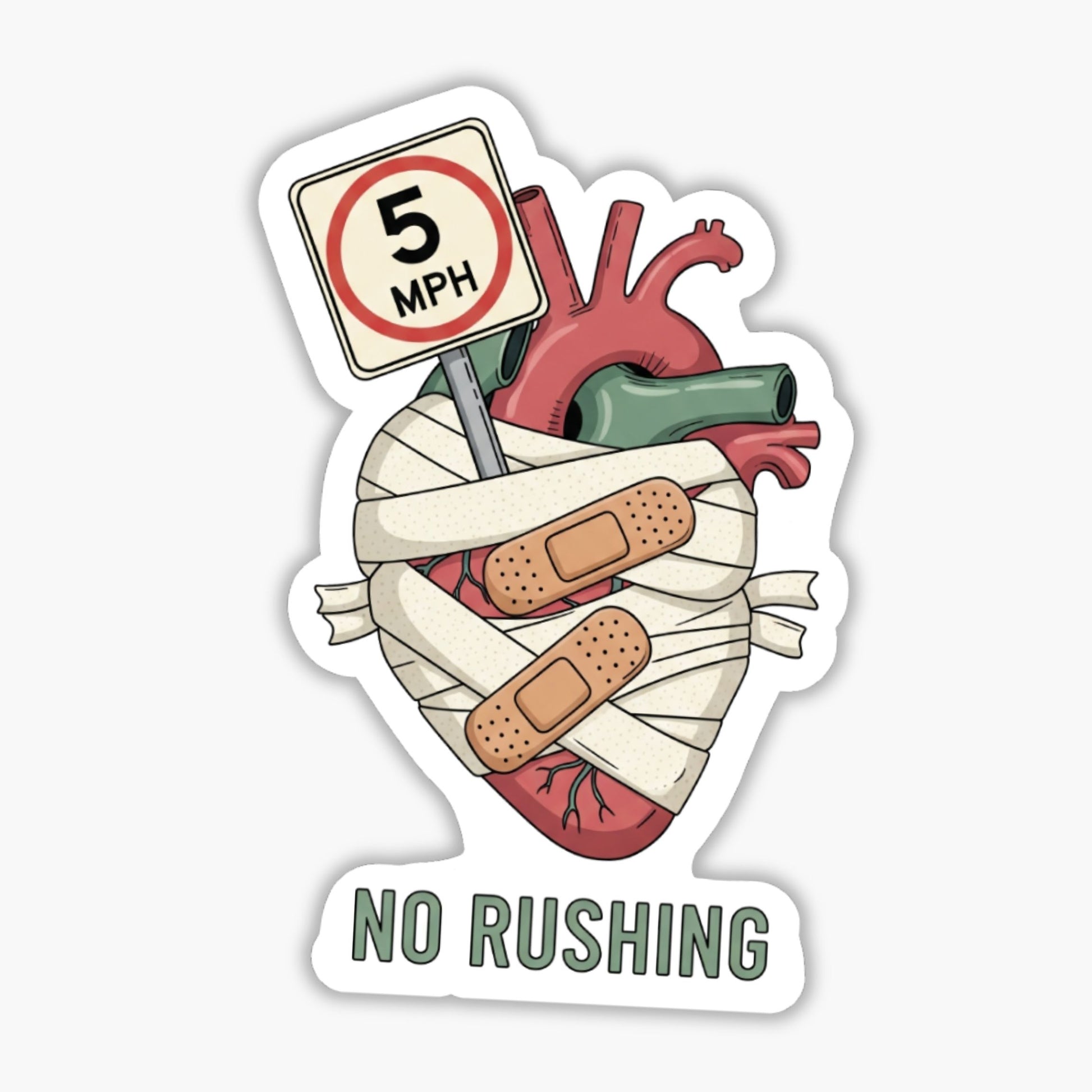 You can’t hurry healing—or me. This No Rushing sassy boundaries sticker is the perfect witty quote sticker for those who prioritize their emotional well-being over the world's fast pace. Featuring a clever visual irony—a 5 mph speed limit sign atop a bandaged heart in soft sage and dusty rose—it serves as a gentle yet firm reminder that progress isn't a race.