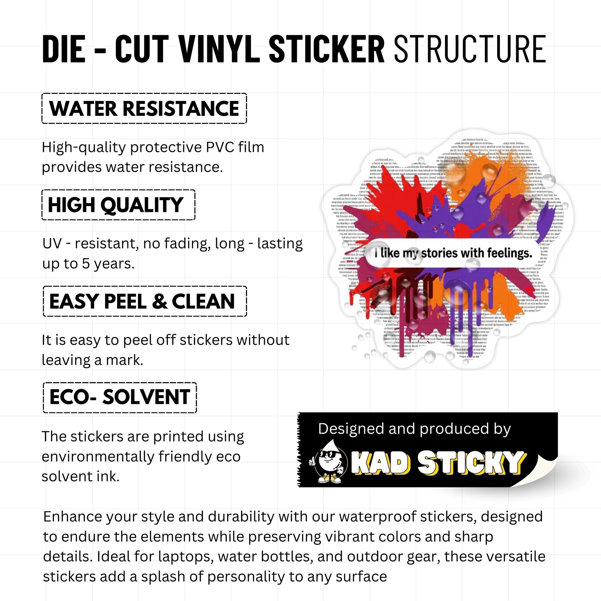 Wear your heart on your e-reader with our I Like My Stories with Feelings Book Lover Sticker. For those who do not just read books but experience them, this decal is a tribute to the stories that leave a lasting mark on the soul.