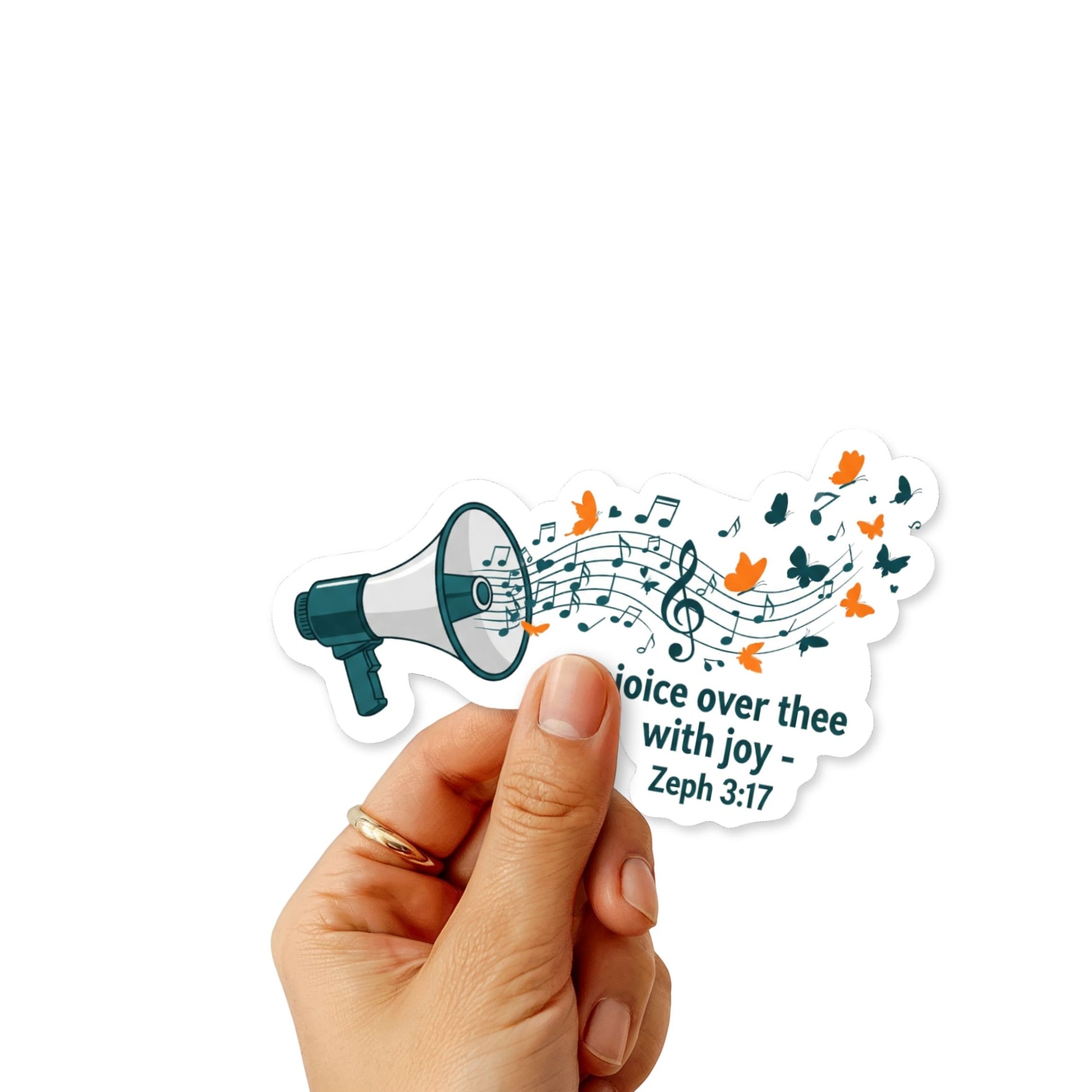 This sticker is a thoughtful encouragement gift for youth group friends, students, or fellow church members. Note: Every print features high-quality ink for long-lasting vibrancy. Add this melody of joy to your gear and carry the promise of Zephaniah with you wherever you go.